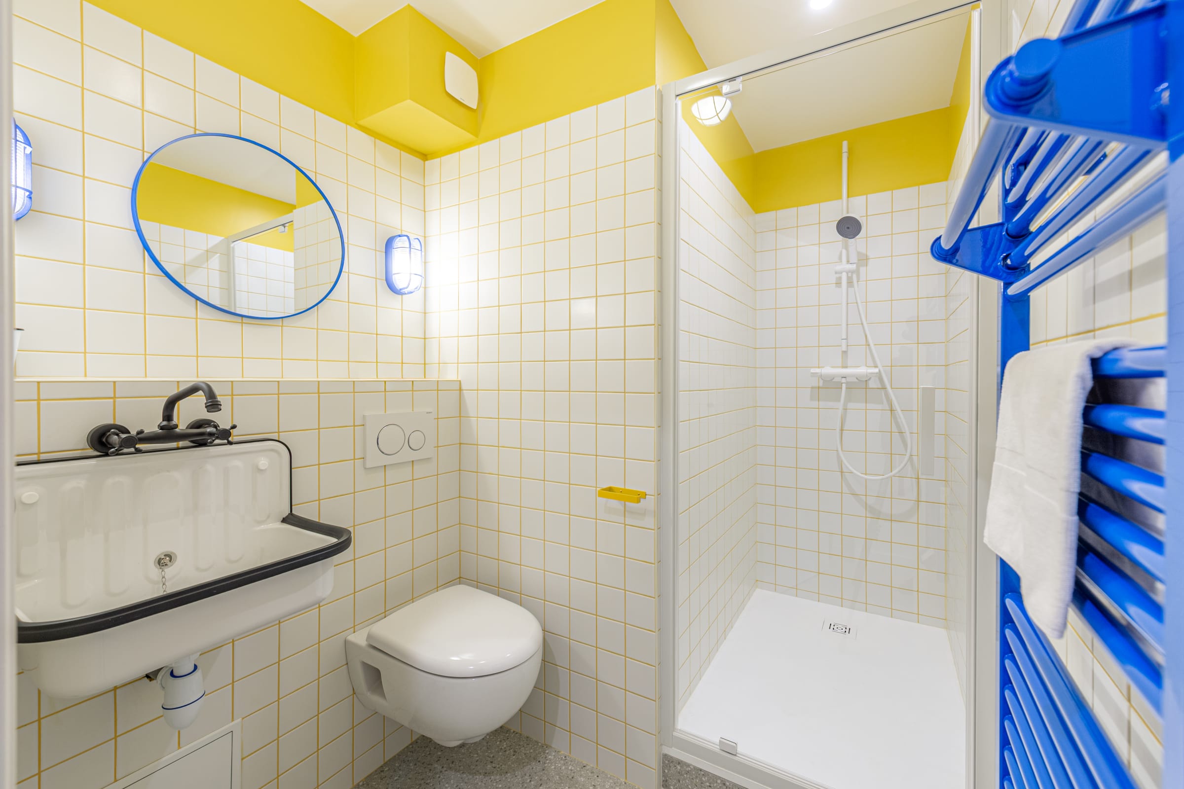 Une salle de douche avec toilettes