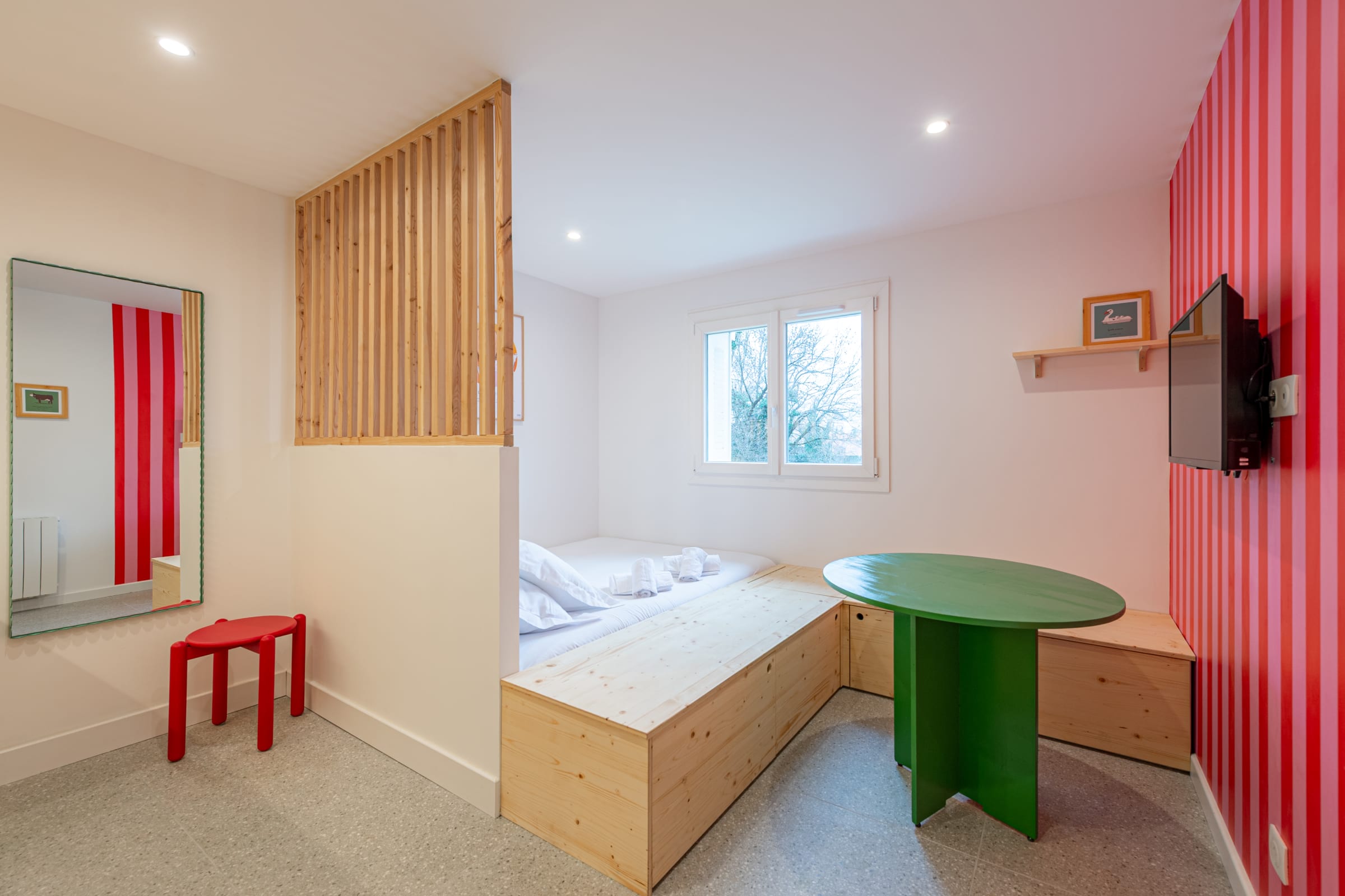 + Bus n°5 juste en bas de l'immeuble qui assure le trajet entre le centre ville / la gare et le logement